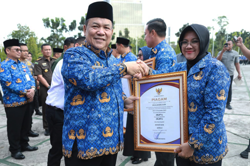 Pekanbaru (BM) – Bupati Siak Dr. Afni Zulkifli menerima penghargaan Universal Health Coverage (UHC) dari Plt. Gubernur Riau S.F. Hariyanto, Senin (17/11/2025). Penghargaan tersebut diberikan atas pencapaian Kabupaten Siak yang berhasil mencapai cakupan jaminan kesehatan semesta per 1 November 2025, dengan tingkat kepesertaan 98,87 persen dan tingkat keaktifan 82,25 persen dari total penduduk 501.630 jiwa.