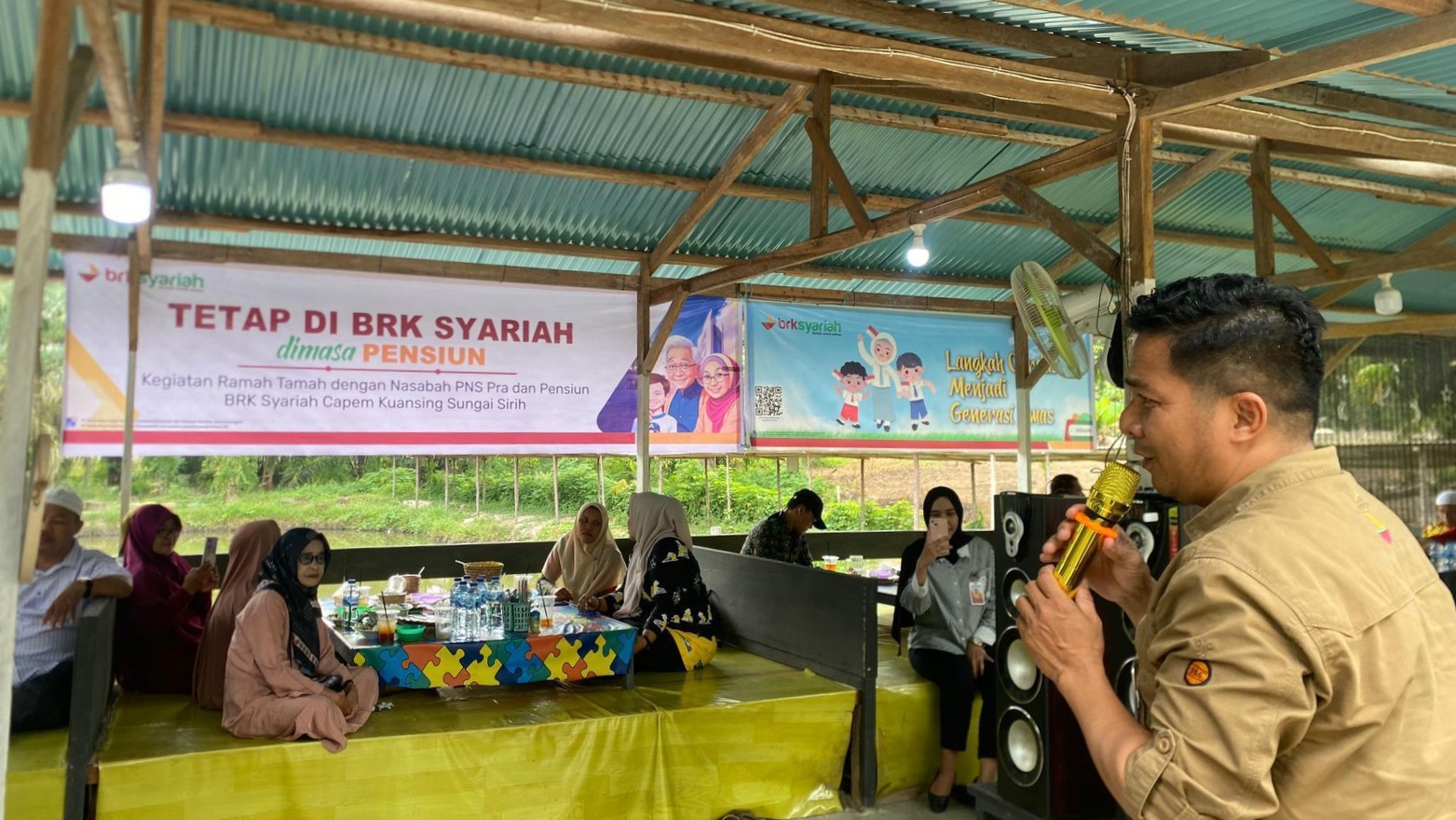 Kuansing (BM) – BRK Syariah Sungai Sirih terus memperkuat layanan perbankan syariah di tengah masyarakat melalui kegiatan sosialisasi produk Simpanan dan Pembiayaan yang diperuntukkan bagi Pra Pensiun dan Pensiunan di wilayah eks transmigrasi Kecamatan Singingi. Kegiatan ini digelar pada Kamis, 6/11/2025, bertempat di Rumah Makan Pondok Ikan Bakar Dua Putri Desa Sungai Sirih, Kabupaten Kuantan Singingi.