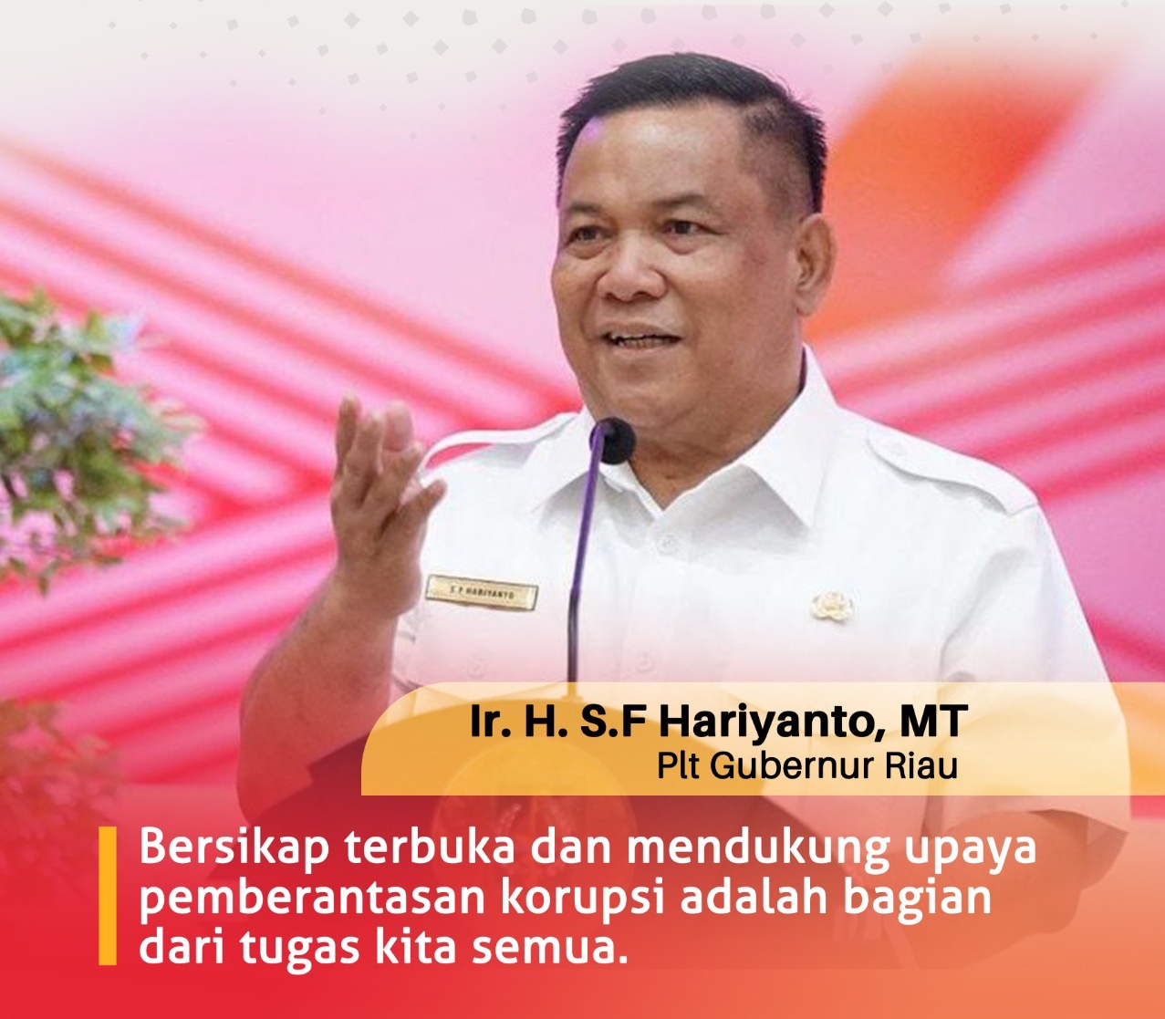 Pekanbaru (BM)– Pelaksana Tugas (Plt) Gubernur Riau, SF Hariyanto, menegaskan dukungannya terhadap langkah Komisi Pemberantasan Korupsi (KPK) RI yang tengah melakukan penyidikan dugaan tindak pidana korupsi di lingkungan Pemerintah Provinsi Riau. Ia menilai keterlibatan KPK merupakan bagian dari upaya memperkuat tata kelola pemerintahan yang bersih dan transparan.
