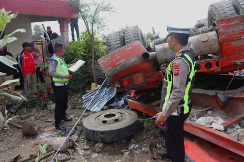 Sementara itu, truk trailer pemicu kecelakaan, kata Wisnu, menabrak dua warga di warung pinggir jalan hingga tewas. Truk tersebut akhirnya terbalik di depan rumah warga.