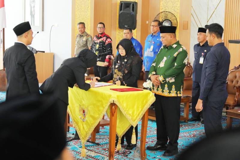 Siak (BM) – Bupati Siak Afni Zulkifli melantik 60 Pejabat Administrator dan Pejabat Pengawas di lingkungan Pemerintah Kabupaten Siak, di Balai Rung Datuk 4 Suku, Komplek Perumahan Rakyat Abdi Praja, Kecamatan Siak, Kamis (12/3/2026).